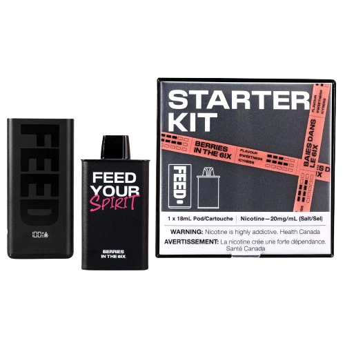 The kit includes one Berries in the 6ix Feed Pod and a Feed Battery, blending the convenience of disposables with the elegance of closed pods. Elevate your vaping experience with the Berries in the 6ix Feed Pod Starter Kit.